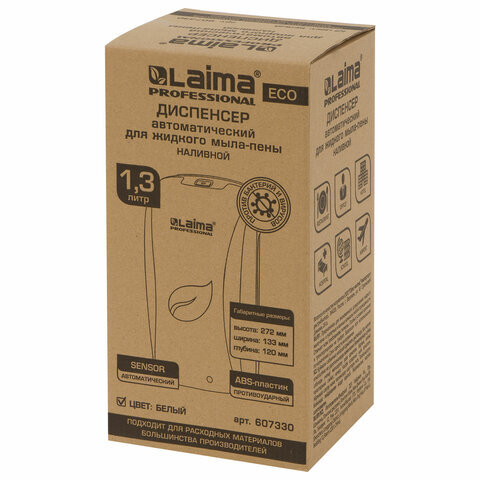 Дозатор для мыла-пены LAIMA PROFESSIONAL ECO, НАЛИВНОЙ, СЕНСОРНЫЙ, 1,3 л, белый, 607330