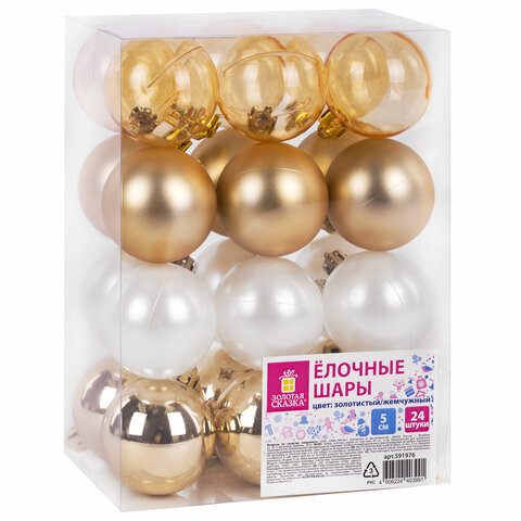 Шары ёлочные 24 шт., 5 см, "Eden Colors", пластик, цвет: золотистый/жемчужный, ЗОЛОТАЯ СКАЗКА, 591976