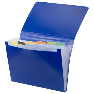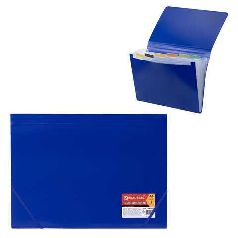 Папка на резинках BRAUBERG "Business", А4, 7 отделений, пластиковый индекс, синяя, 0,5 мм, 224144