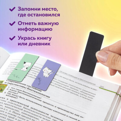 Закладки для книг МАГНИТНЫЕ, "CATS", набор 6 шт., 60x20 мм, BRAUBERG, 113159