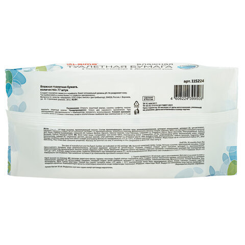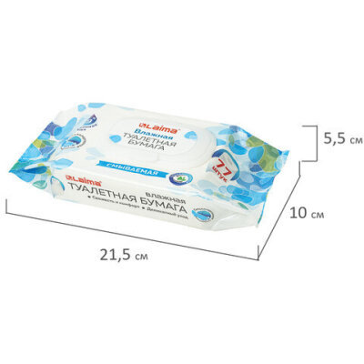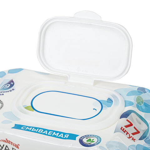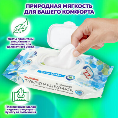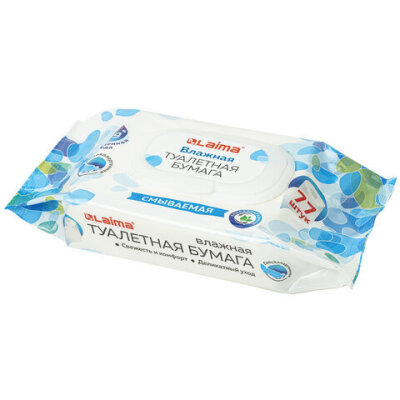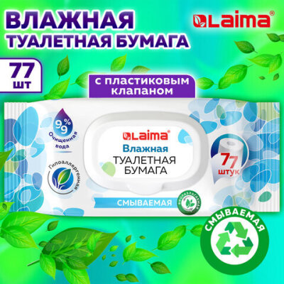 Бумага туалетная влажная смываемая 77 шт., БИОРАЗЛАГАЕМАЯ, с пластиковым клапаном, LAIMA, 115224