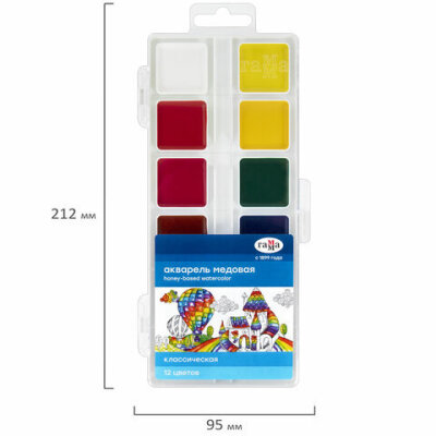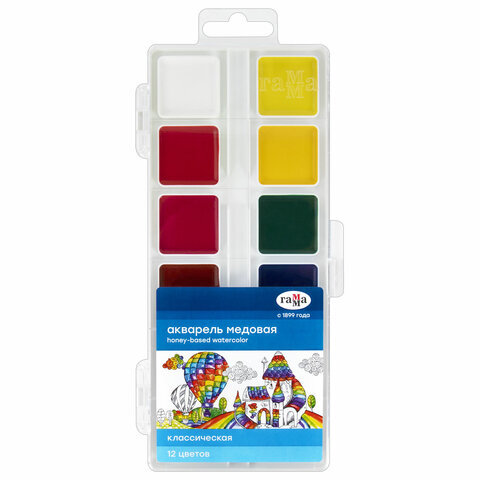 Краски акварельные ГАММА "Классическая", 12 цветов, медовая, пластиковый корпус, европодвес, 1009194