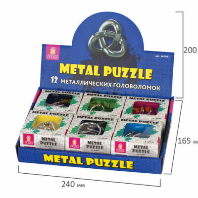 Головоломка металлическая ЗОЛОТАЯ СКАЗКА, 1 шт., 12 видов, в дисплее, 662091