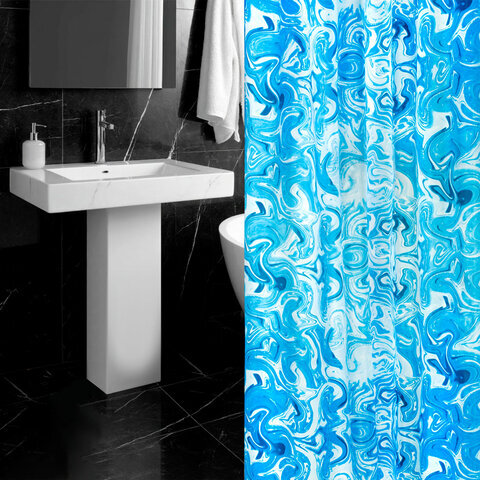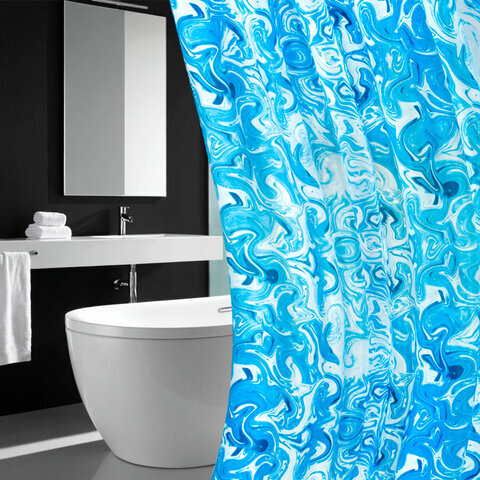 Шторка для ванной ПОЛИЭСТЕР, 180х200 см, кольца в комплекте, ГОЛУБЫЕ ВОЛНЫ, PRIMILA (ПРИМИЛА), 700083
