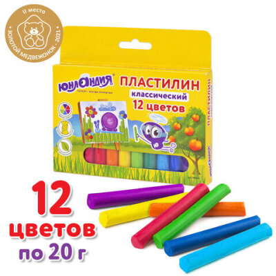 Пластилин классический ЮНЛАНДИЯ "ЮНЛАНДИК-ЖИВОПИСЕЦ", 12 цветов, 240 г, ВЫСШЕЕ КАЧЕСТВО, 105029