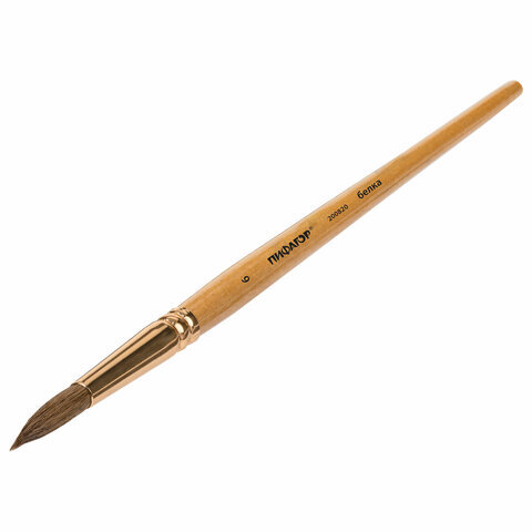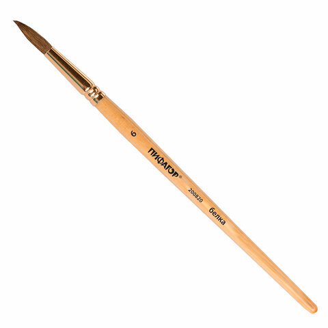 Кисть ПИФАГОР, БЕЛКА, круглая, № 6, деревянная лакированная ручка, с колпачком, пакет с подвесом, 200820