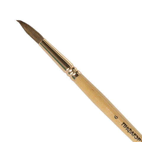 Кисть ПИФАГОР № 6 подходит для работы с акварелью, гуашью, тушью, а также для прорисовывания различных деталей рисунка. Снабжена защитным пластиковым колпачком.