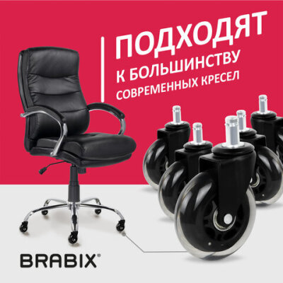 Комплект мягких бесшумных роликов BRABIX для компьютерных кресел.