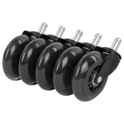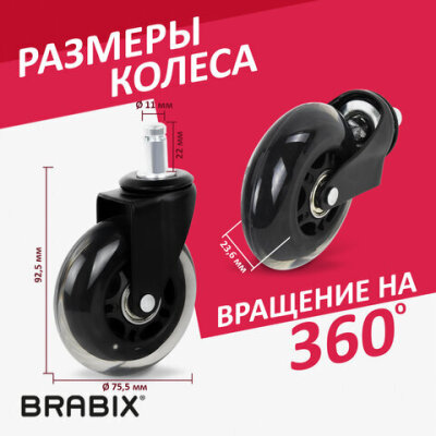 Колеса (ролики) BRABIX для кресла мягкие, резиновые, d 76 мм, КОМПЛЕКТ 5 шт., шток d 11 мм, в коробе, 532524
