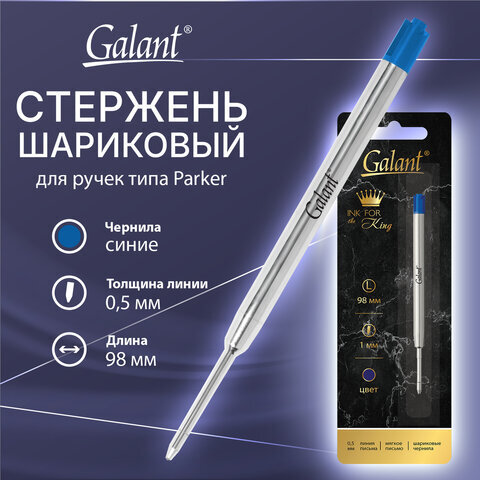 Стержень шариковый тип PARKER, СИНИЙ, пишущий узел 1 мм, металл, 98 мм, блистер, GALANT, 170383