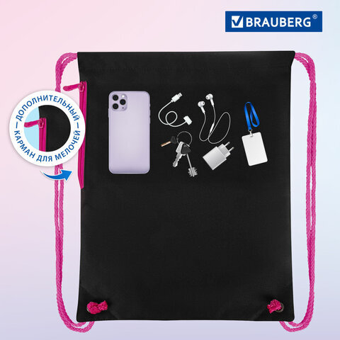 Мешок для обуви BRAUBERG PREMIUM – необходимый аксессуар в школе! Подходит для сменной обуви и спортивной формы. Затягивается двумя шнурками. Можно носить на плечах за спиной.