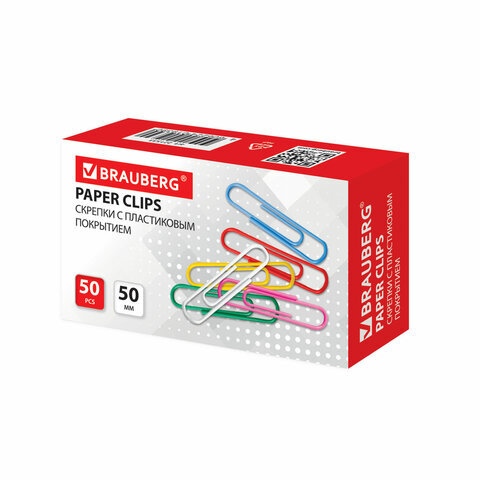 Скрепки большие 50 мм, цветные, 50 шт., в картонной коробке, BRAUBERG, 221533