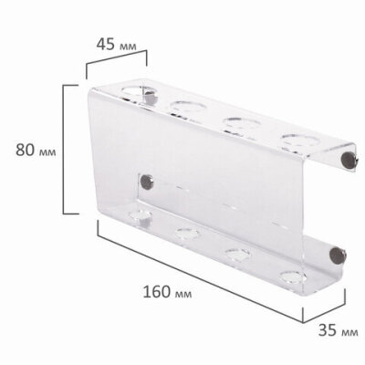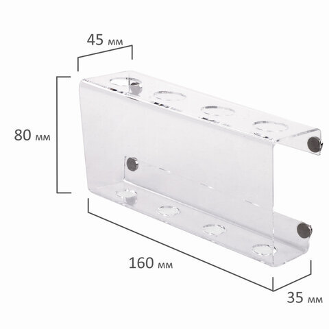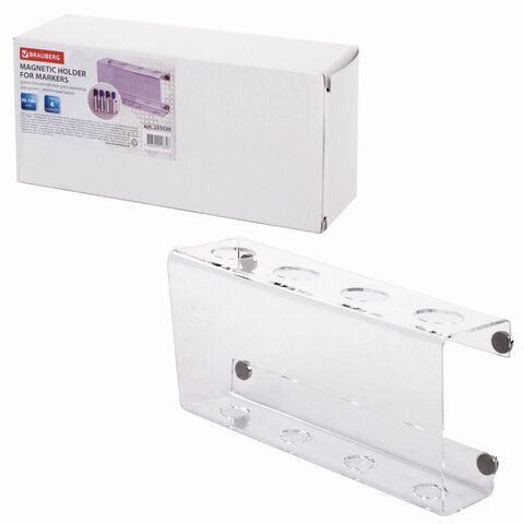 Держатель магнитный для 4 маркеров для доски (85х160 мм), прозрачный акрил, BRAUBERG, РОССИЯ, 235530