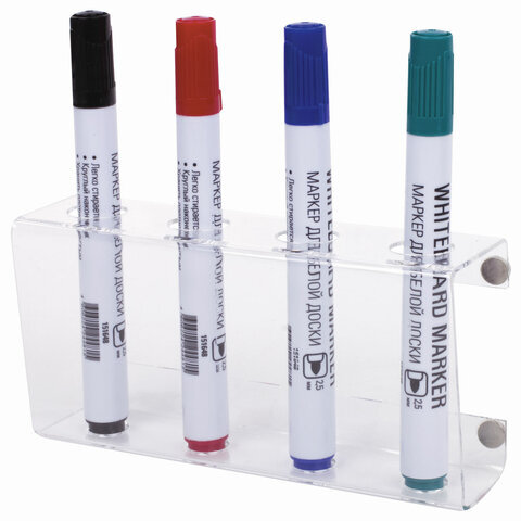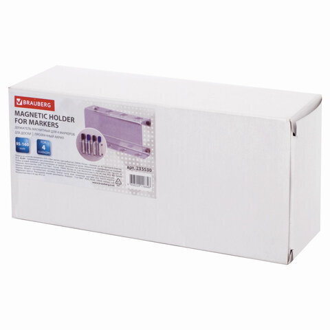 Магнитный держатель BRAUBERG предназначен для одновременного хранения 4 маркеров на магнитно-маркерной доске. Маркеры не входят в комплект. Рекомендуемый диаметр маркеров - от 17 мм.