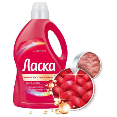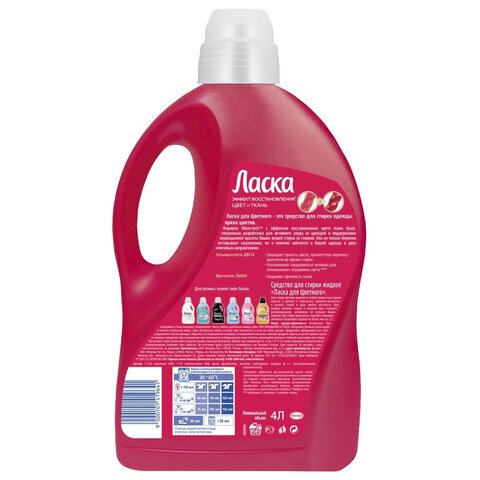 Жидкое средство для стирки автомат ЛАСКА "Для цветного" специально разработано для активного ухода за одеждой ярких цветов и поддержания первозданной красоты вещей стирка за стиркой.