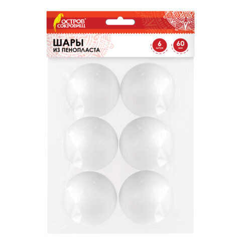Шары из пенопласта, 60 мм, 6 шт., ОСТРОВ СОКРОВИЩ, 665367