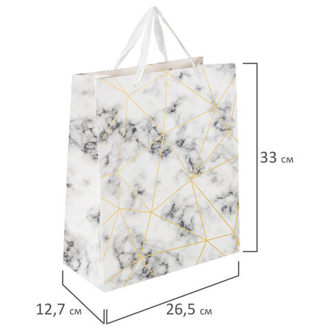 Пакет подарочный (1 штука) 26x13x33 см, ЗОЛОТАЯ СКАЗКА "Golden Marble", тиснение фольгой, 608251