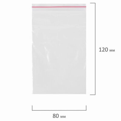 Пакеты с замком ZIP LOCK "зиплок", комплект 100 шт., 80х120 мм, ПВД, толщина 35 микрон, BRAUBERG, 606209