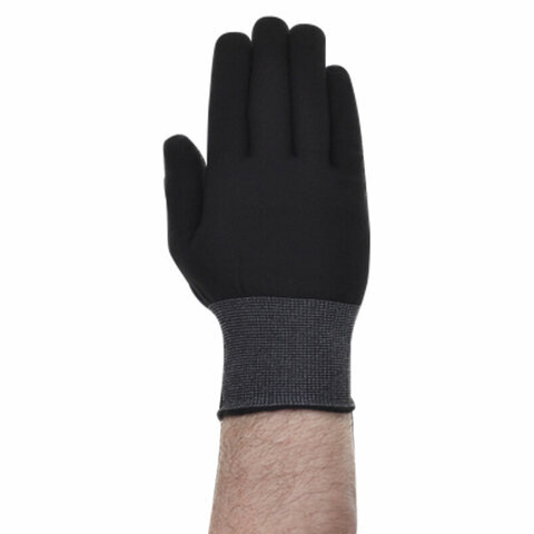 Черные НЕЙЛОНОВЫЕ перчатки 15 класса (бесшовные) с нанесением черного силиконизированного ПВХ (микроточка).
