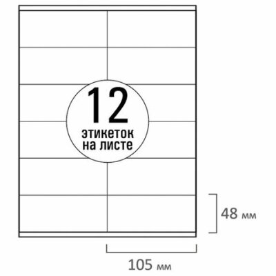 Этикетка самоклеящаяся 105х48 мм, 12 этикеток, белая, 70 г/м2, 50 листов, TANEX, сырье Финляндия, 114533, TW-2612