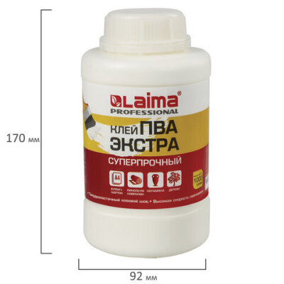 Клей ПВА ЭКСТРА суперпрочный ЛАЙМА применяется для склеивания изделий из бумаги, картона, тканей, приклеивания виниловых и бумажных обоев, линолеума, ковролина, облицовочной плитки. Подходит для ответственных столярных работ и изготовления мебели.