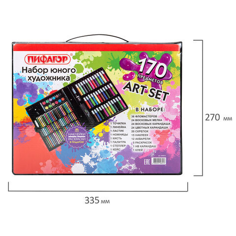 Набор юного художника ПИФАГОР отлично подойдет для первых шагов в рисовании. В красочном кейсе есть все необходимые предметы для развития творческих способностей ребенка.