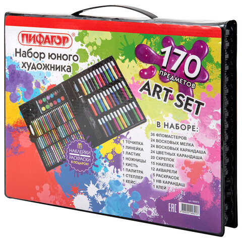 Набор ЮНОГО ХУДОЖНИКА "ЮНЫЙ ХУДОЖНИК" для рисования и творчества, ПИФАГОР, 170 предметов, 665672