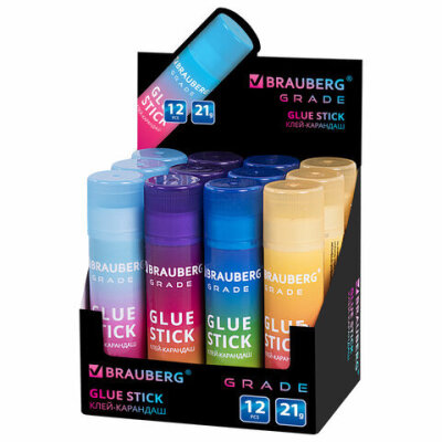 Клей-карандаш в градиентном корпусе BRAUBERG "Grade", 21 г, PVP-основа, ассорти, 271247